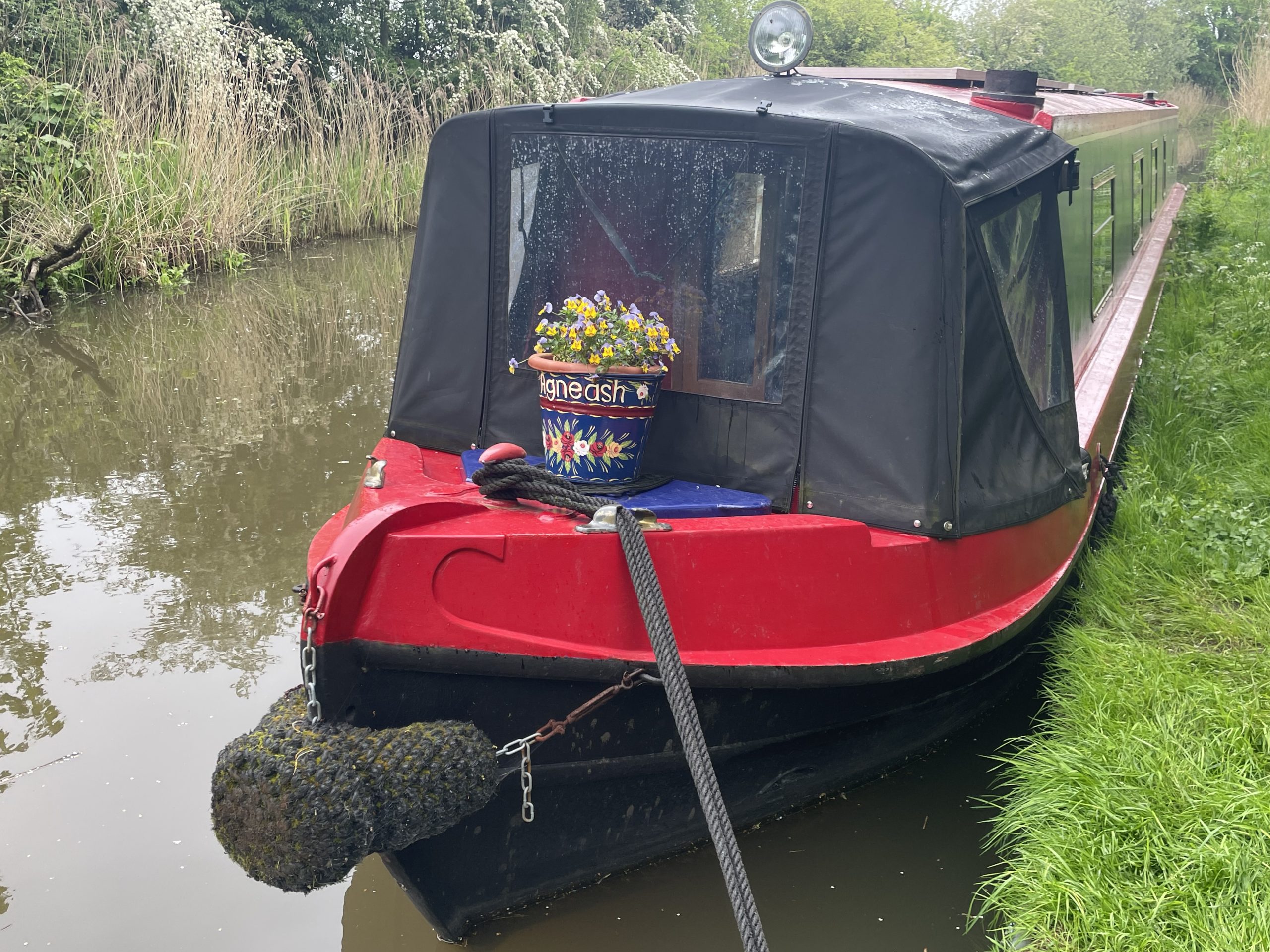 "Agneash" is a 57ft Trad narrowboat in imaculate condition inside and out. She may have a traditional stern but she has a very modern fitout. Built in 2006 by Liverpool Boats and fitted out by a woodworking master craftsman with oak panels, oak detailing, ample storage space, full size shower, cassette toilet, beautiful galley with breakfast bar, 12V fridge and new sofabed.