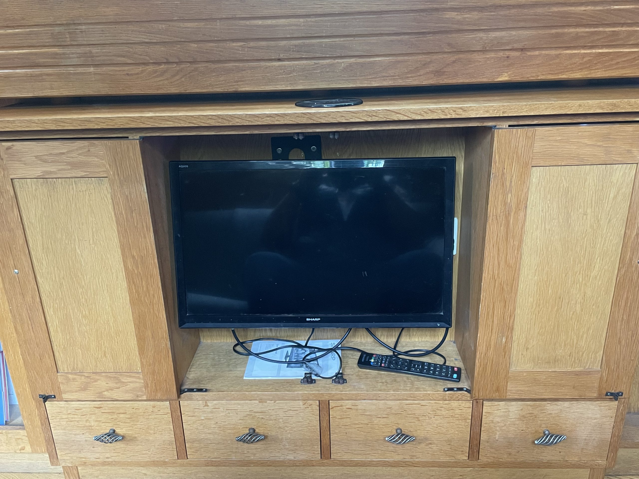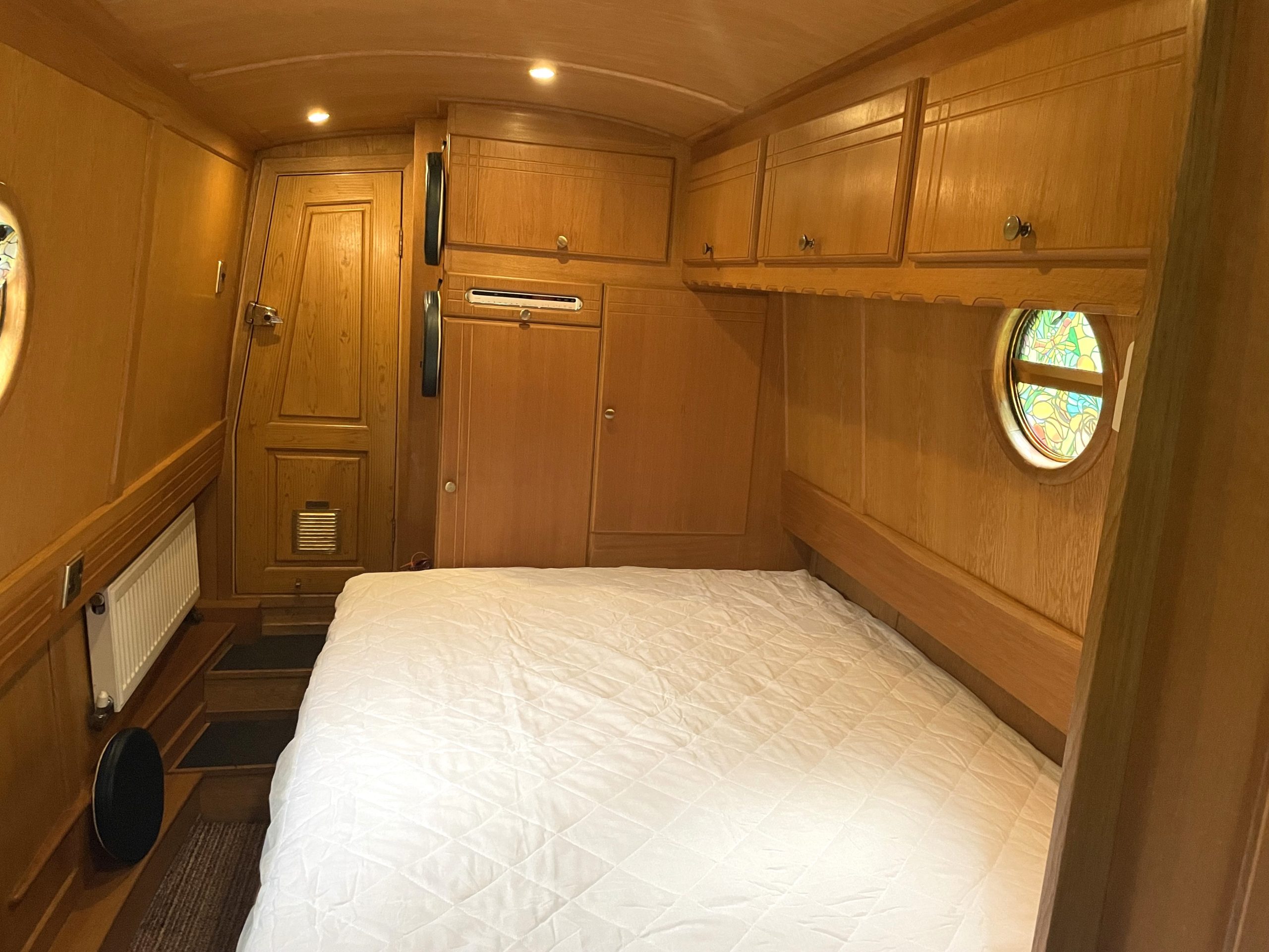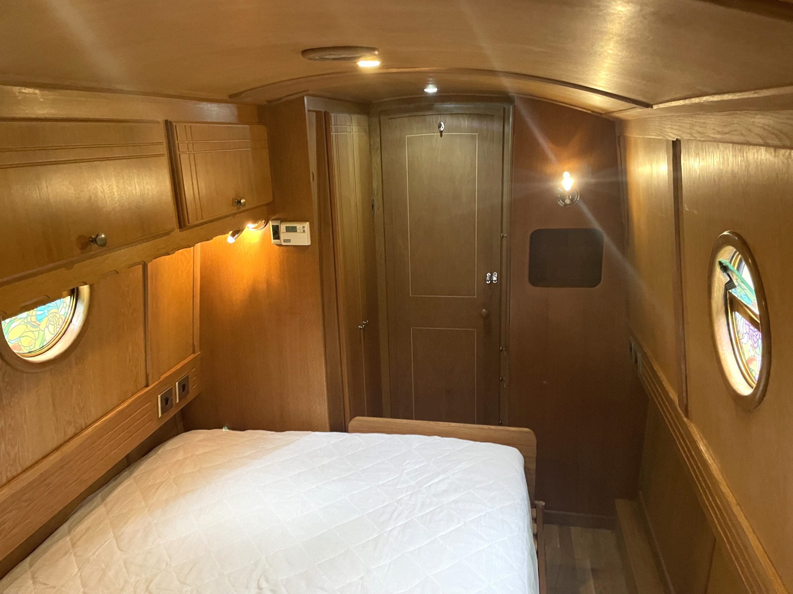 The aft bedroom currently has a double bed but can be converted into 2 single beds. Under bed storage with draws, wardrobes for all those clthes and more with overhead cupboard storage as a bonus.
