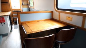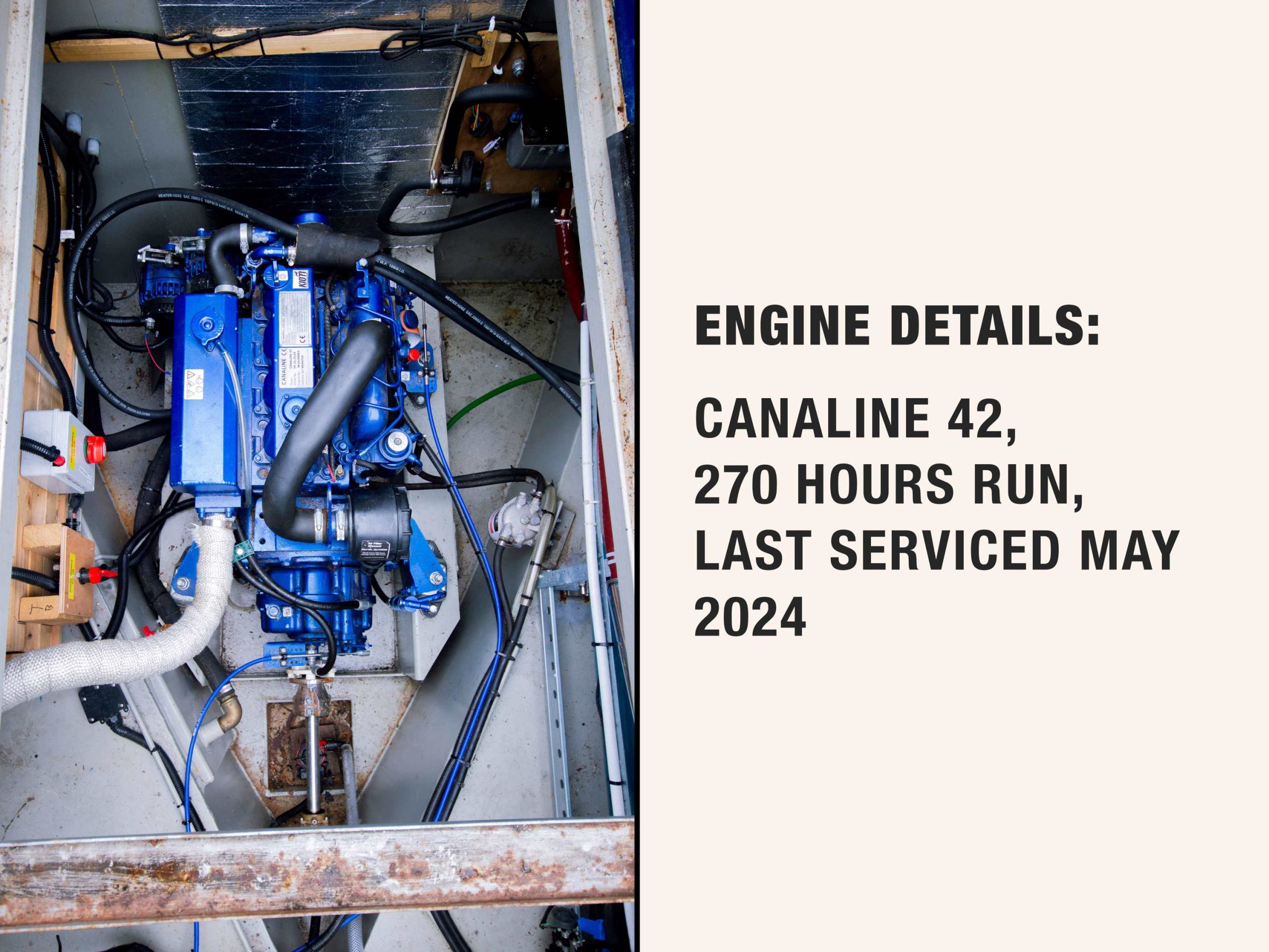 Amorosa is fitted out to reflect a modern style, being light and airy with r=easy relaxed living. The floor is engineered wood with a 4mm top Oak layer, both beautiful and hard wearing. Ceilings and side panels are Melamine faced 9mm plywood, the Melamine face gives a hard scratch resistant wipe clean surface. The trim is solid Oak which complements the modern styling. All windows and portholes are double glazed to eliminate condensation and also tinted to enhance privacy. The toilet is a pump out system, both clean and convenient. The 250 litre holding tank lasts approximately three weeks between pump-outs. The kitchen features two separate refrigerator / freezers, thus greatly enhancing the storage capacity of fresh / frozen food. Amorosa has been very lightly used and is in excellent condition with only 270 hours running time on the engine. She is now reluctantly for sale due to family ill health issues.