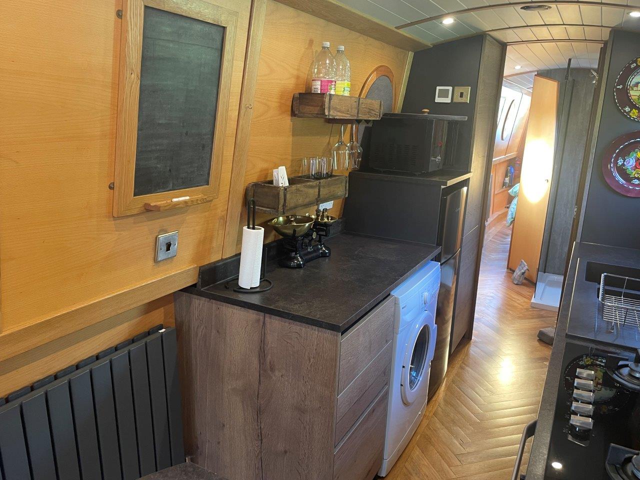 Truely stunning modern galley withbreakfast bar. Rangemaster sink, touch open cupboards/drawers, washing machine, plumbing for slimline dishwasher, 3/4 fridge freezer and microwave.