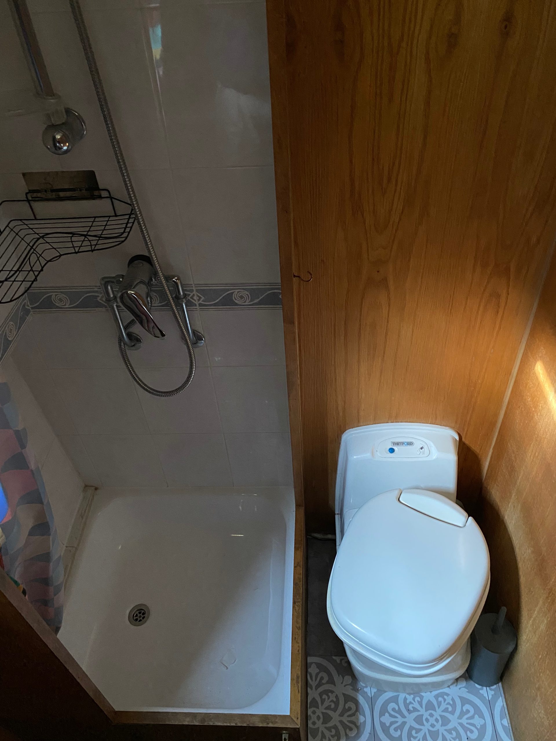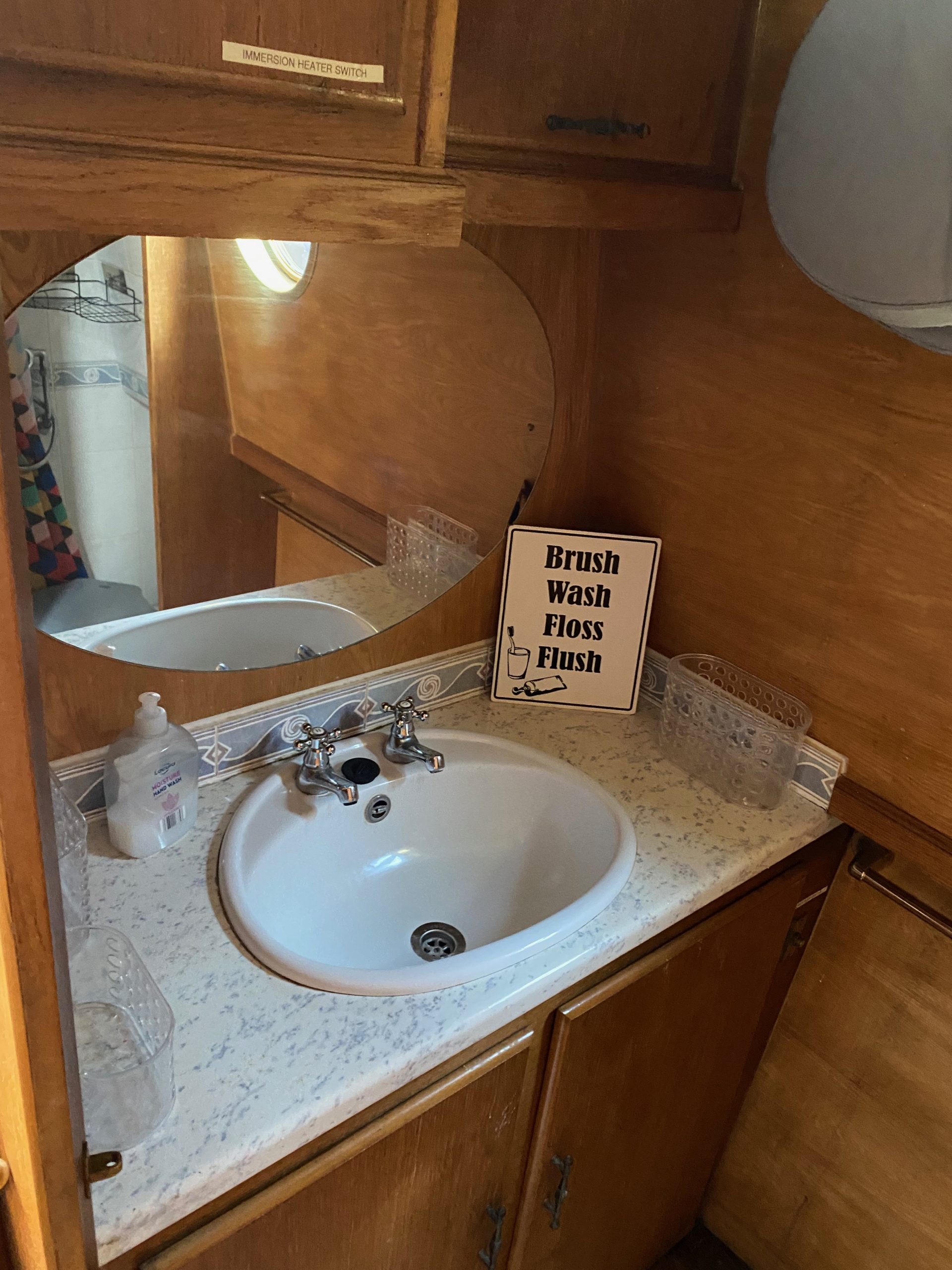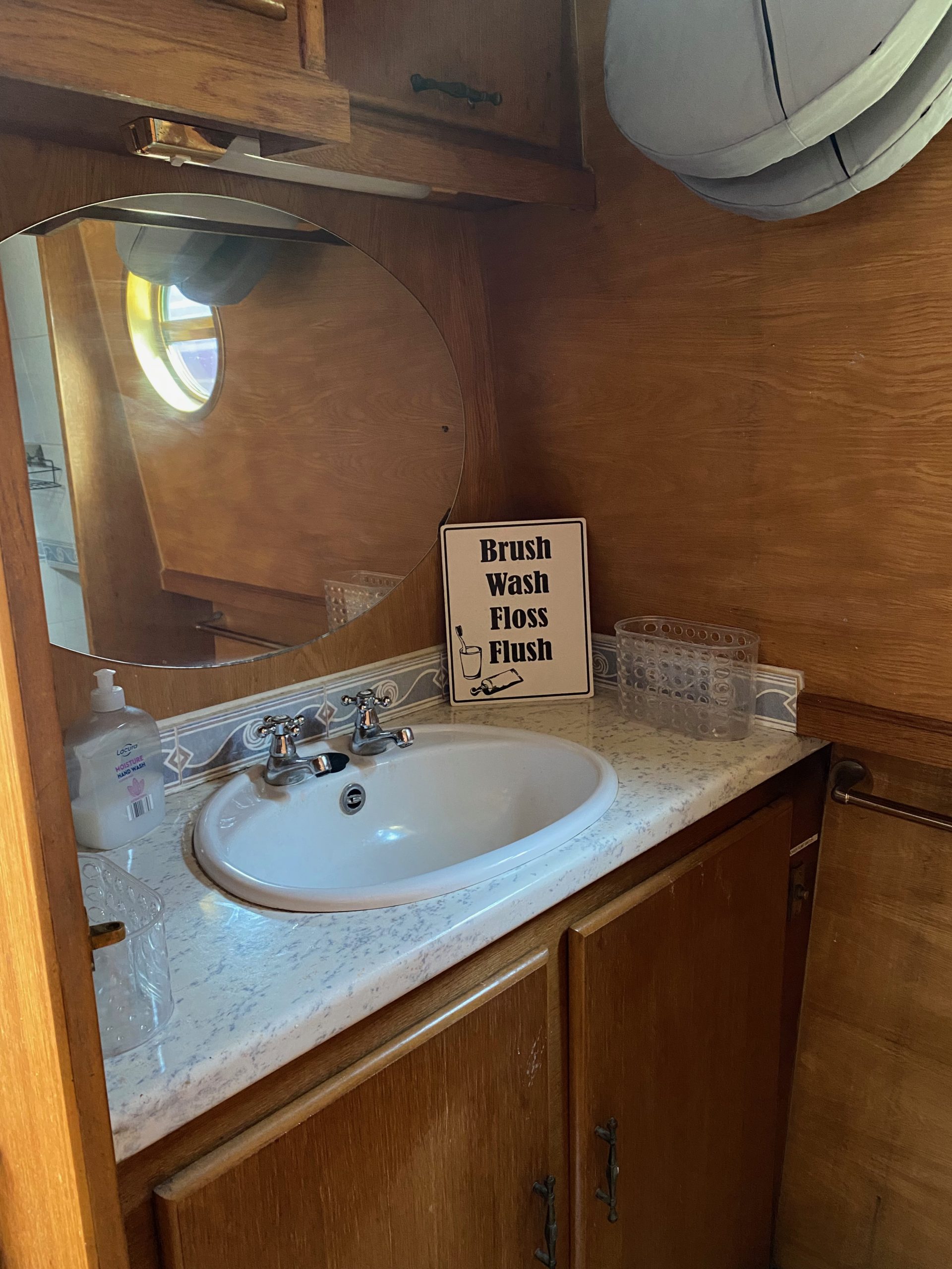 Which has plenty of wardrobe and storage space, the bed is positioned athwarships but this could very easily change to conventional position.