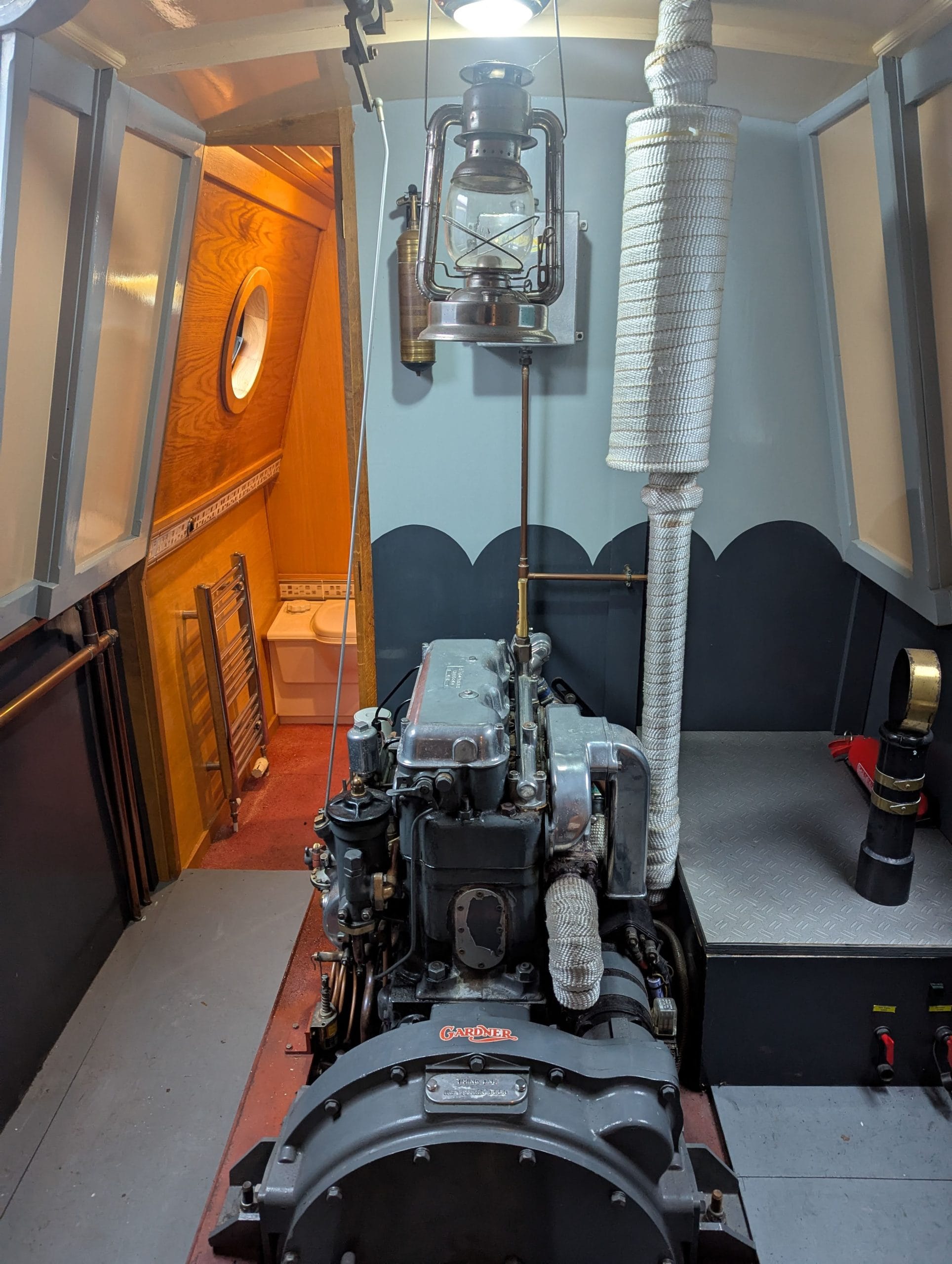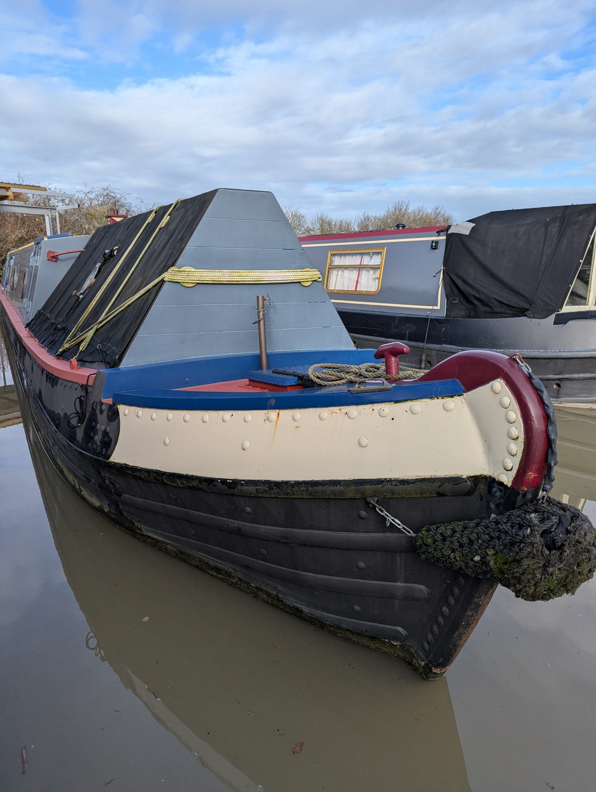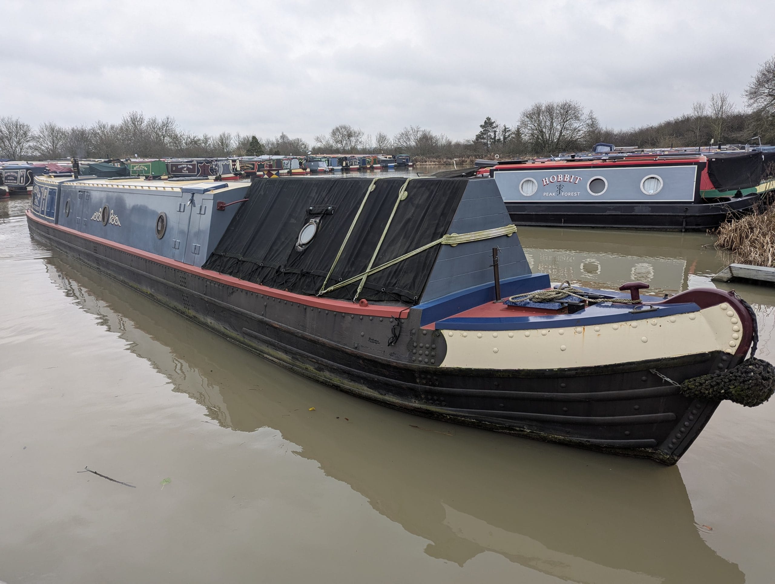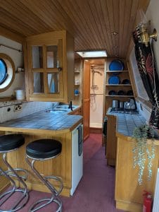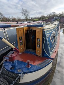 Firefly is a striking tug-style narrowboat built by Barry Hawkins, powered by a beautifully maintained Gardner 3LW. She boasts an exceptional interior fit-out, featuring a tongue-and-groove oak ceiling, a charming forward bedroom, and a finely detailed boatman’s cabin showcasing exquisite roses and castles artwork.