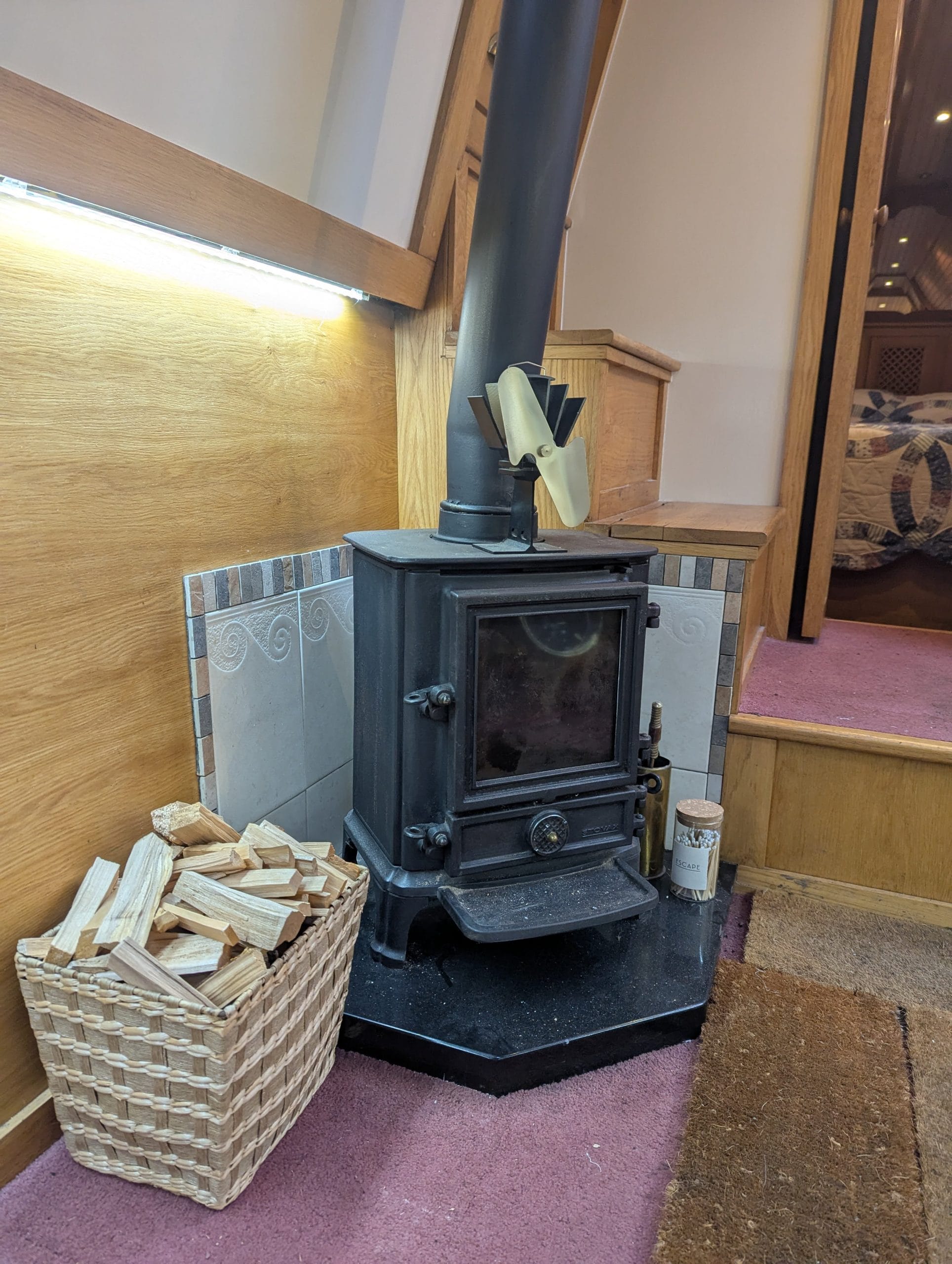 StoveMultifuel Stove in Main Cabin, Diesel Stove in Boatman's Cabin with Back Boiler