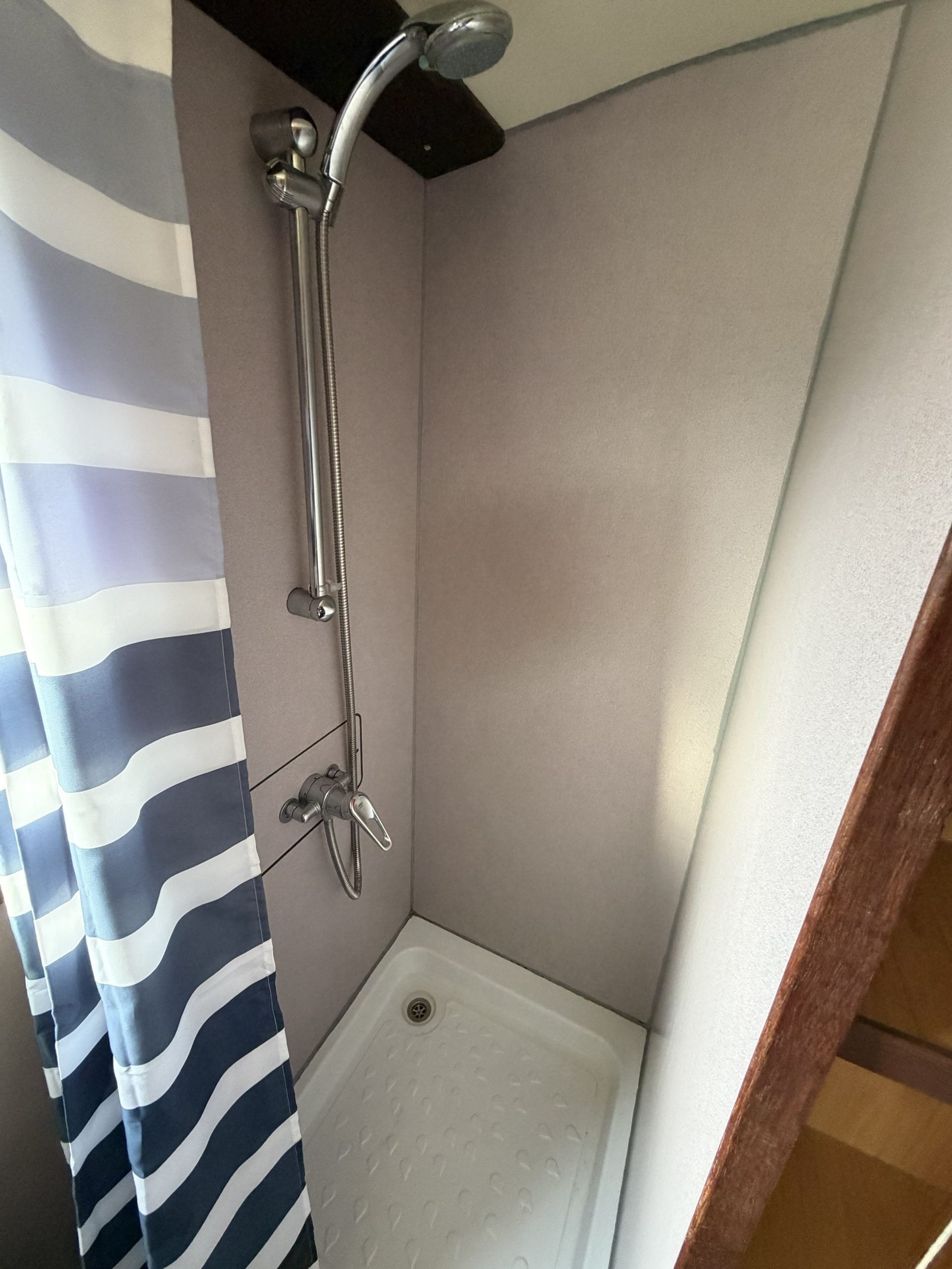 New automatic bilge pump, fire extinguishers, fire blanket, navigation lights, lifebuoy, boat pole, hammer, boarding plank, windlass, fenders, shoreline lead
