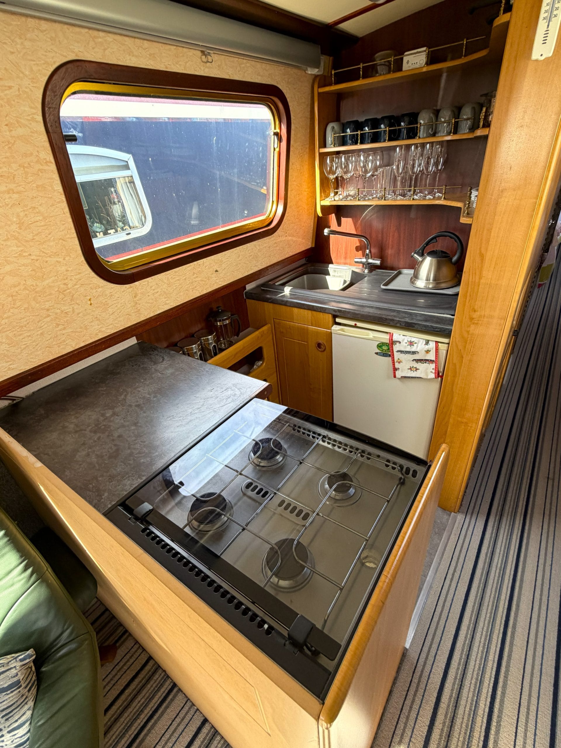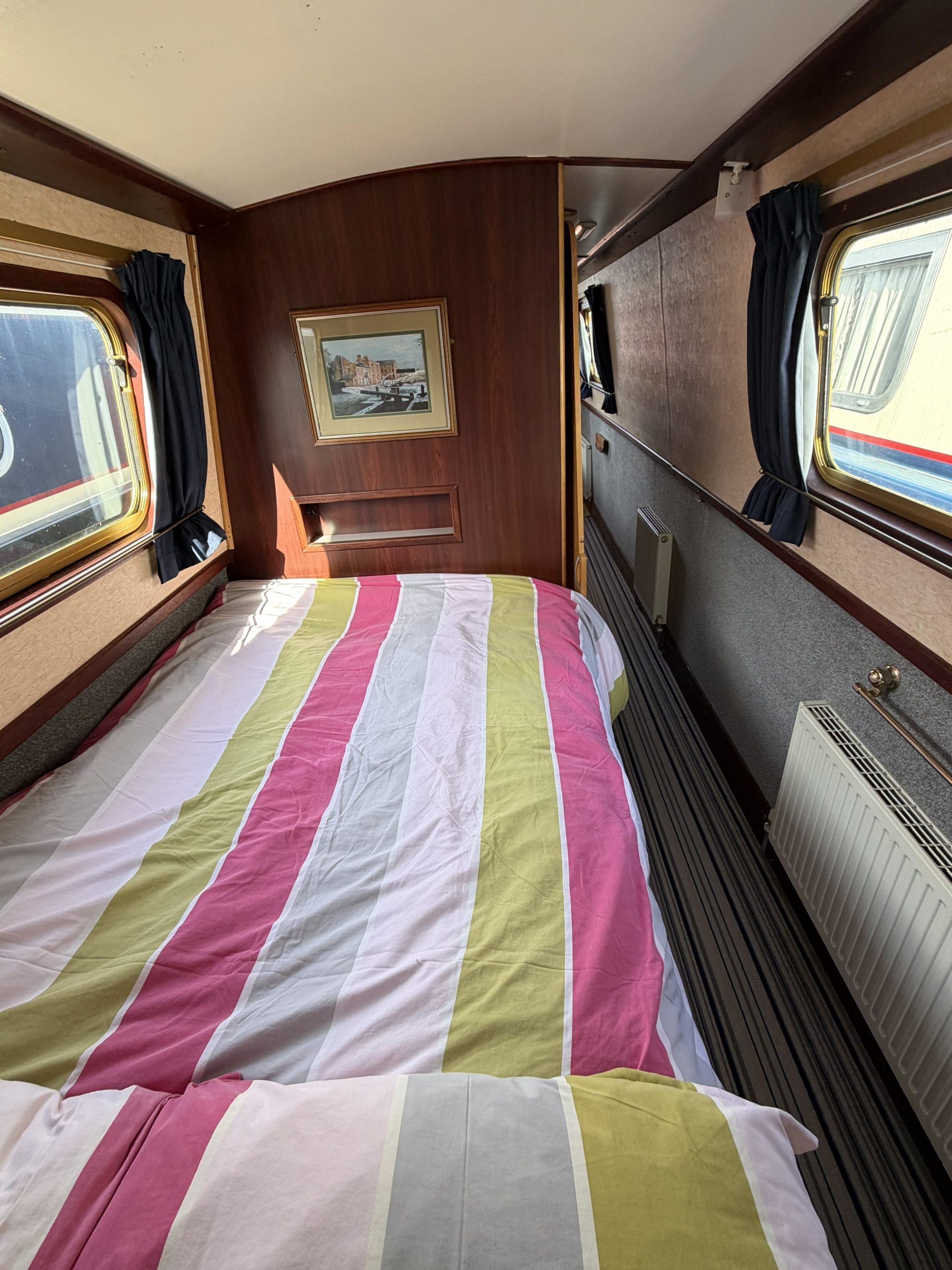 Halcyon Waters is a very well kept, clean, light and airy 58ft Cruiser Stern. She was built by G&J Reeves and fitted out by Black Prince Narrowboats in 2004. Halcyon Waters has 2 bedrooms with a double bed in both. The boat is powered by a Isuzu 38hp engine.