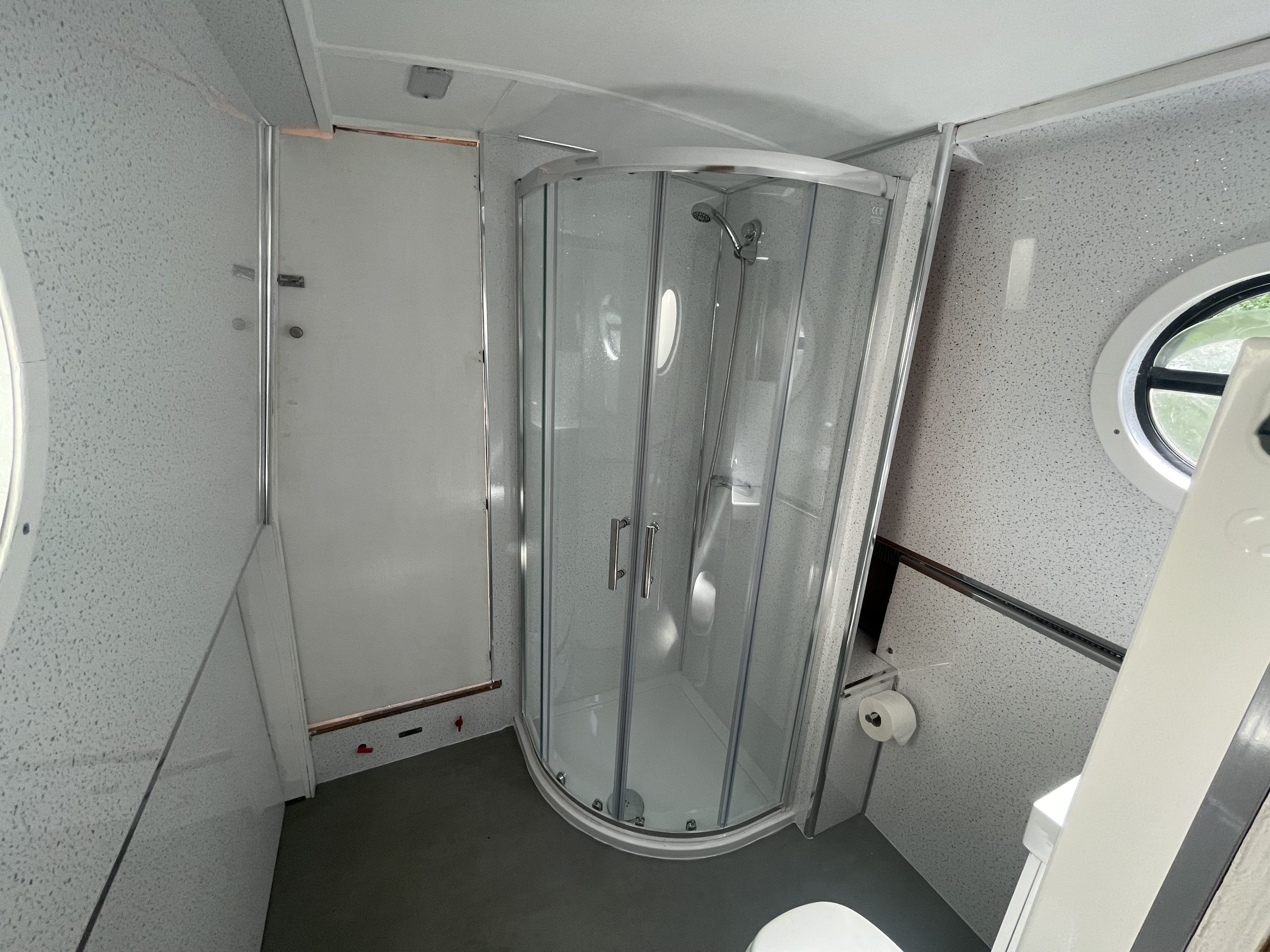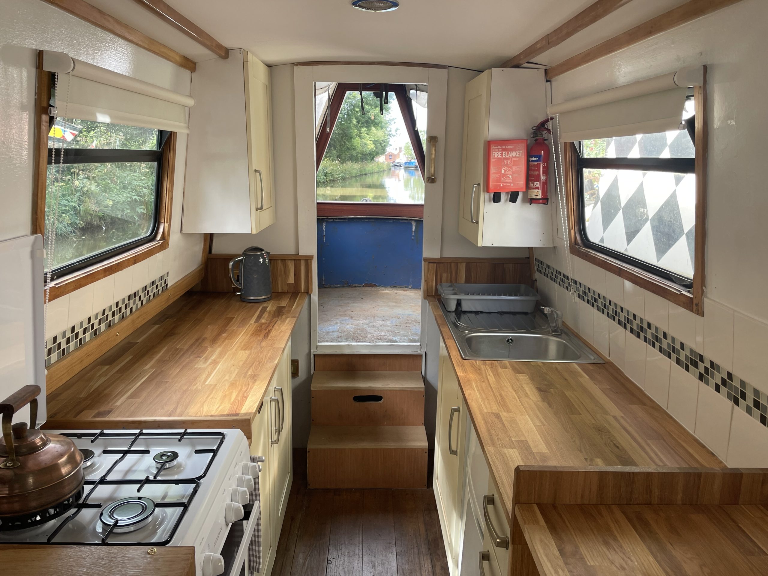 Just Riley is 57ft traditional stern narrowboat. She has had a partial refit throughout with the bathroom being fully refitted. Just blacked April 24, new anodes fitted and new boat safety certificate issued.