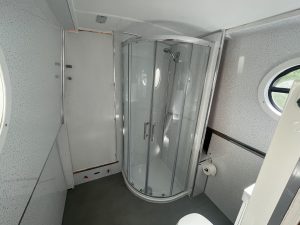 The bathroom has been completely refiited with a Thetford C200 cassette toilet with spare cassette, quadrant show cubicle, washbasin with vanity/mirror.